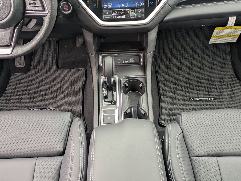 14 Speakers, 3rd row seats: bench, 4-Wheel Disc Brakes, ABS brakes, Air Conditioning, Alloy wheels, AM/FM radio: SiriusXM with 360L, Apple CarPlay & Android Auto, Auto High-beam Headlights, Auto-Dimming Exterior Mirror with Approach Light, Auto-dimming Rear-View mirror, Automatic temperature control, Brake assist, Bumpers: body-color, Cargo Tray, Compass, Delay-off headlights, Driver door bin, Driver vanity mirror, Dual front impact airbags, Dual front side impact airbags, Electronic Stability Control, Emergency communication system: MySubaru Companion (5-years free), Exterior Parking Camera Rear, Four wheel independent suspension, Front anti-roll bar, Front Bucket Seats, Front Center Armrest, Front dual zone A/C, Front fog lights, Front reading lights, Fully automatic headlights, Garage door transmitter: HomeLink, harman/kardon® Speakers, Heated door mirrors, Heated Front Bucket Seats, Heated front seats, Heated rear seats, Heated steering wheel, Illuminated entry, Knee airbag, Leather Shift Knob, Leather steering wheel, LED Cargo Area Lighting, LED Upgrade, Low tire pressure warning, Memory seat, Navigation system: MySubaru Navigator (1-year trial), Occupant sensing airbag, Outside temperature display, Overhead airbag, Overhead console, Panic alarm, Passenger door bin, Passenger vanity mirror, Perforated Leather-Trimmed Upholstery, Power door mirrors, Power driver seat, Power Liftgate, Power moonroof, Power passenger seat, Power steering, Power windows, Radio data system, Radio: Subaru 11.6 Multimedia System with Navigation, Rear air conditioning, Rear anti-roll bar, Rear reading lights, Rear window defroster, Rear window wiper, Reclining 3rd row seat, Remote keyless entry, Security system, Speed control, Speed-sensing steering, Split folding rear seat, Spoiler, Standard Model, Steering wheel mounted audio controls, Tachometer, Telescoping steering wheel, Tilt steering wheel, Traction control, Trip computer, Turn signal indicator mirrors, Variably intermittent wipers, Wheels: 20 x 7.5 J Dark Gray Alloy with Machine Finish.