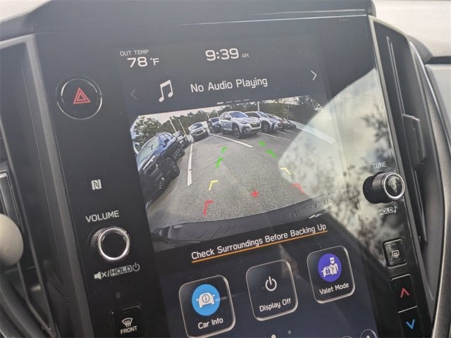 4-Wheel Disc Brakes, 6 Speakers, ABS brakes, Air Conditioning, All-Weather Floor Liners, Alloy wheels, AM/FM radio: SiriusXM with 360L, Anti-whiplash front head restraints, Auto High-beam Headlights, Auto-Dimming Exterior Mirror with Approach Light, Auto-Dimming Mirror with Compass and HomeLink, Automatic temperature control, Brake assist, Bumpers: body-color, Driver door bin, Driver vanity mirror, Dual front impact airbags, Dual front side impact airbags, Electronic Stability Control, Emergency communication system: MySubaru Companion (5-years free), Exterior Parking Camera Rear, Four wheel independent suspension, Front anti-roll bar, Front Bucket Seats, Front Center Armrest, Front dual zone A/C, Front fog lights, Front reading lights, Fully automatic headlights, Heated door mirrors, Heated Front Bucket Seats, Heated front seats, Illuminated entry, Knee airbag, Leather Shift Knob, Leather steering wheel, LED Upgrade, Low tire pressure warning, Occupant sensing airbag, Outside temperature display, Overhead airbag, Overhead console, Panic alarm, Passenger door bin, Passenger vanity mirror, Popular Package #3A, Power door mirrors, Power steering, Power windows, Radio data system, Radio: Subaru 11.6 Multimedia Plus System, Rear anti-roll bar, Rear Bumper Cover, Rear seat center armrest, Rear Seatback Protector, Rear side impact airbag, Rear window defroster, Rear window wiper, Remote keyless entry, Security system, Speed control, Speed-sensing steering, Split folding rear seat, Spoiler, Sport Cloth Upholstery, Standard Model, Steering wheel mounted audio controls, Tachometer, Telescoping steering wheel, Tilt steering wheel, Traction control, Trip computer, Turn signal indicator mirrors, Variably intermittent wipers, Wheels: 18 x 7.0 J Dark Gray Aluminum-Alloy.