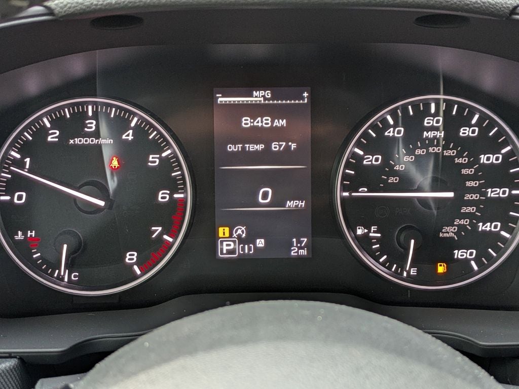 4-Wheel Disc Brakes, 6 Speakers, ABS brakes, Air Conditioning, Alloy wheels, AM/FM radio: SiriusXM with 360L, Anti-whiplash front head restraints, Auto High-beam Headlights, Automatic temperature control, Brake assist, Bumpers: body-color, Driver door bin, Driver vanity mirror, Dual front impact airbags, Dual front side impact airbags, Electronic Stability Control, Emergency communication system: MySubaru Companion (5-years free), Exterior Parking Camera Rear, Four wheel independent suspension, Front anti-roll bar, Front Bucket Seats, Front Center Armrest, Front dual zone A/C, Front fog lights, Front reading lights, Fully automatic headlights, Heated door mirrors, Heated Front Bucket Seats, Heated front seats, Illuminated entry, Knee airbag, Leather steering wheel, Low tire pressure warning, Occupant sensing airbag, Outside temperature display, Overhead airbag, Overhead console, Panic alarm, Passenger door bin, Passenger vanity mirror, Power door mirrors, Power driver seat, Power moonroof: Panoramic, Power steering, Power windows, Premium Textured Cloth Upholstery, Radio data system, Radio: Subaru 11.6 Multimedia Plus System, Rear anti-roll bar, Rear seat center armrest, Rear window defroster, Rear window wiper, Remote keyless entry, Security system, Speed control, Speed-sensing steering, Split folding rear seat, Spoiler, Steering wheel mounted audio controls, Tachometer, Telescoping steering wheel, Tilt steering wheel, Traction control, Trip computer, Variably intermittent wipers, Wheels: 17 x 7.0 J Dark Metallic Aluminum-Alloy.
