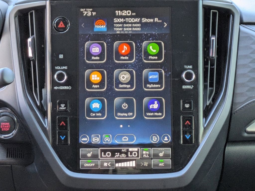 - Radio: Subaru 11.6" Multimedia Plus System -inc: valet mode, integrated center information display, AM/FM stereo HD Radio, multi-touch gesture high resolution display screen, voice activated controls, Bluetooth® audio streaming and hands-free phone connectivity w/SMS text messaging (refer to Subaru.com for cellphone compatibility), iPod control capability, smartphone integration: Android Auto and Apple CarPlay w/full screen view and wireless connection, SiriusXM satellite radio w/360L (free 4-month trial subscription included), USB and Over The Air (OTA) audio system update, steering wheel controls, 6 speakers, 3.5mm auxiliary input jack and roof mounted audio and satellite antenna