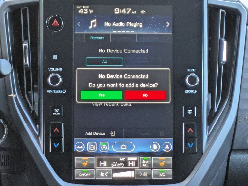 - Radio: Subaru 11.6" Multimedia Plus System -inc: valet mode, integrated center information display, AM/FM stereo HD Radio, multi-touch gesture high resolution display screen, voice activated controls, Bluetooth® audio streaming and hands-free phone connectivity w/SMS text messaging (refer to Subaru.com for cellphone compatibility), iPod control capability, smartphone integration: Android Auto and Apple CarPlay w/full screen view and wireless connection, SiriusXM satellite radio w/360L (free 4-month trial subscription included), USB and Over The Air (OTA) audio system update, steering wheel controls, 6 speakers, 3.5mm auxiliary input jack and roof mounted audio and satellite antenna