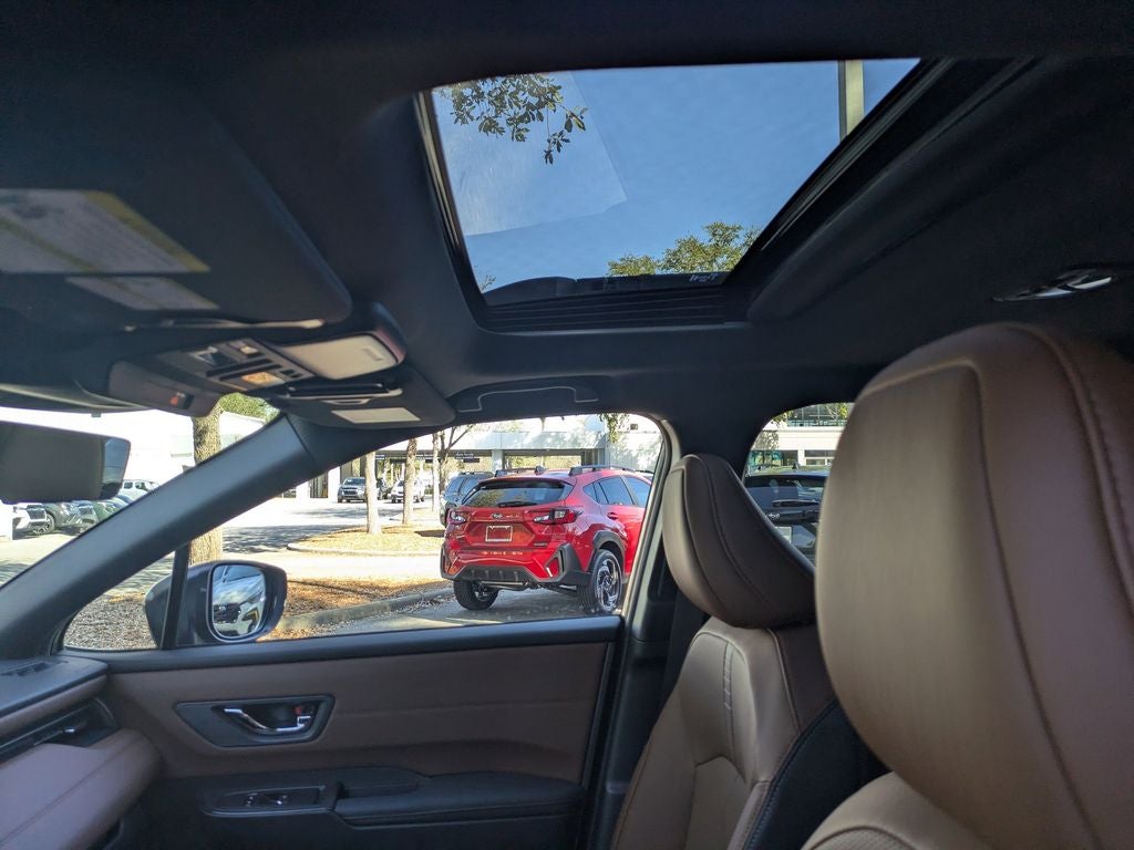 12 Speakers, 4-Wheel Disc Brakes, ABS brakes, Air Conditioning, All-Weather Floor Liners, Alloy wheels, AM/FM radio: SiriusXM with 360L, Anti-whiplash front head restraints, Auto High-beam Headlights, Auto-Dimming Exterior Mirror with Approach Light, Auto-dimming Rear-View mirror, Automatic temperature control, Blind Spot Warning, Brake assist, Bumpers: body-color, Compass, Driver door bin, Driver vanity mirror, Dual front impact airbags, Dual front side impact airbags, Electronic Stability Control, Emergency communication system: MySubaru Companion (5-years free), Exterior Parking Camera Rear, Four wheel independent suspension, Front anti-roll bar, Front Bucket Seats, Front Center Armrest w/Storage, Front dual zone A/C, Front fog lights, Front reading lights, Fully automatic headlights, Garage door transmitter: HomeLink, harman/kardon® Speakers, Heated and Ventilated Front Bucket Seats, Heated door mirrors, Heated front seats, Heated rear seats, Heated steering wheel, HVAC memory, Illuminated entry, Illuminated Side Sill Plates, Knee airbag, Leather steering wheel, LED Upgrade, Low tire pressure warning, Memory seat, Nappa Leather-Trimmed Perforated Upholstery, Navigation system: MySubaru Navigator (1-year trial), Occupant sensing airbag, Outside temperature display, Overhead airbag, Overhead console, Panic alarm, Passenger door bin, Passenger vanity mirror, Power door mirrors, Power driver seat, Power Liftgate, Power moonroof, Power passenger seat, Power steering, Power windows, Radio: Subaru 12.1 Multimedia System with Navigation, Rain sensing wipers, Rear anti-roll bar, Rear Bumper Cover, Rear seat center armrest, Rear window defroster, Rear window wiper, Remote keyless entry, Security system, Speed control, Speed-sensing steering, Split folding rear seat, Spoiler, Standard Model, Steering wheel mounted audio controls, Tachometer, Telescoping steering wheel, Tilt steering wheel, Traction control, Trip computer, Turn signal indicator mirrors, Variably intermittent wipers, Ventilated front seats, Wheels: 19 x 7J Black Aluminum-Alloy.