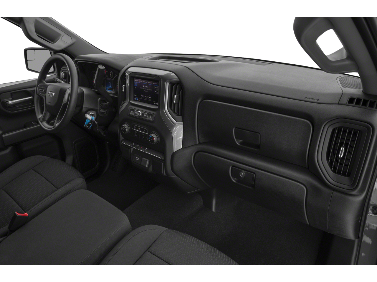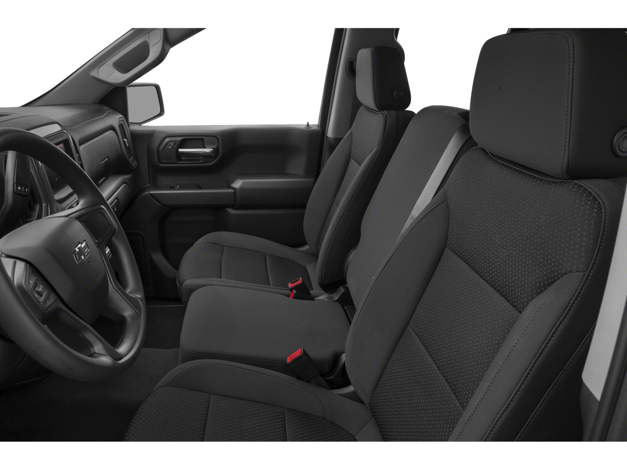 The interior of this Silverado is designed for comfort and practicality. The Cloth Seat Trim in Jet Black offers a durable and comfortable seating surface. Manual climate control keeps the cabin at your desired temperature, while Cruise control with steering wheel mounted controls makes long drives more relaxing. Power door locks with 2 stage unlocking and Power Front Windows w/Driver Express Up/Down add convenience to your daily routine. Remote Keyless Entry and Remote Start allow you to easily access and start your truck from a distance. The Rear 60/40 Folding Bench Seat (Folds Up) provides flexible cargo and passenger configurations. With features like Rear console climate control ducts, everyone stays comfortable.