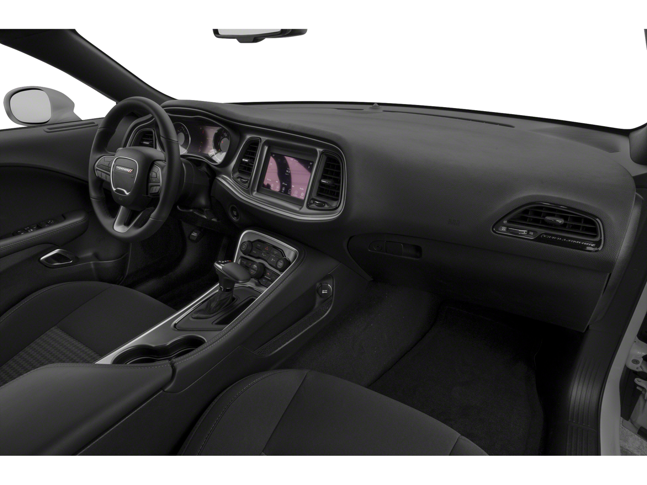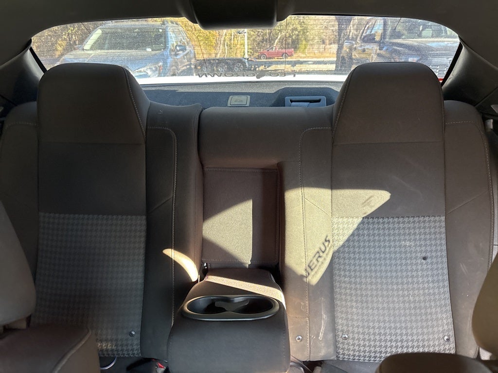 The Challenger's bold design is highlighted by 20-inch Satin Carbon Aluminum wheels, a distinctive black grille with chrome accents, and a rear lip spoiler for that classic muscle car appeal. The White Knuckle Clearcoat exterior paired with body-colored bumpers and heated door mirrors adds to its sleek, cohesive look, making a statement wherever you go.