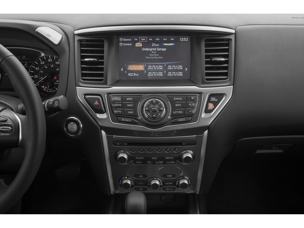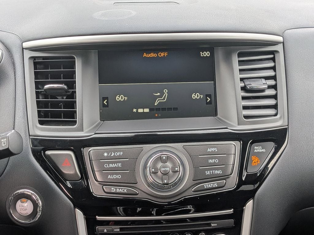 Step inside the Pathfinder's spacious and comfortable cabin, designed with your family's needs in mind. The cloth seating surfaces offer a comfortable and durable seating option for everyday use. The dual-zone automatic climate control ensures that everyone stays comfortable, no matter the weather outside. The third-row seating provides ample space for up to seven passengers, making it perfect for carpooling or family outings. With multiple 12V power outlets throughout the cabin, keeping devices charged on long trips is never a problem. The rear climate control system allows passengers in the back to adjust the temperature to their liking, ensuring everyone stays comfortable.