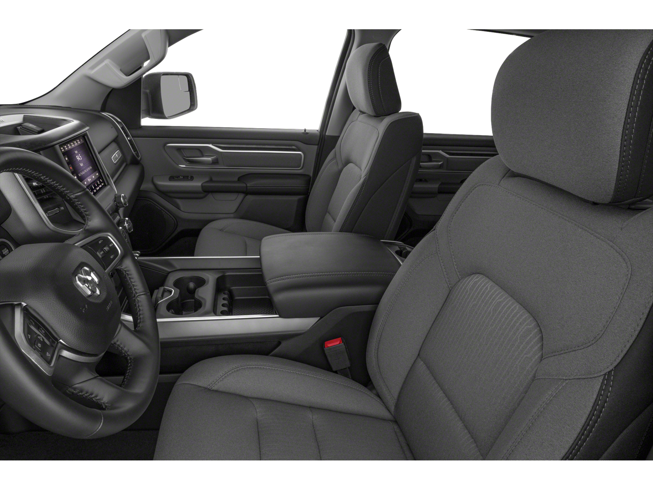 The interior of this RAM 1500 is a masterclass in ergonomic design and material quality. The cabin features Premium cloth front seat upholstery in a sophisticated Diesel Gray/Black palette. For the driver, finding the perfect position is simple thanks to the Power 8-Way Driver Seat and Power 4-Way Driver Lumbar Adjust. When multiple drivers share the vehicle, the Power Adjustable Pedals ensure that everyone can reach a comfortable and safe driving stance.