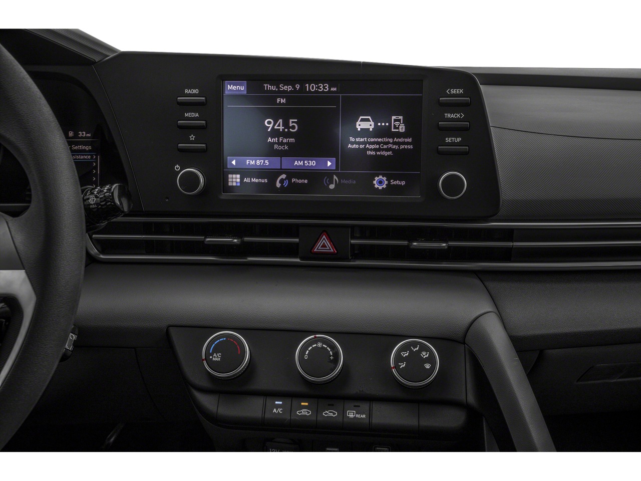 Stay connected and entertained with the Elantra's advanced infotainment system. The 8-inch primary touchscreen display with Apple CarPlay & Android Auto integration transforms your driving experience, allowing effortless access to navigation, music, and more. With Bluetooth® wireless audio streaming and voice-activated controls, keep your hands on the wheel and your focus on the road. The dual USB ports ensure your devices are always charged and ready for action.