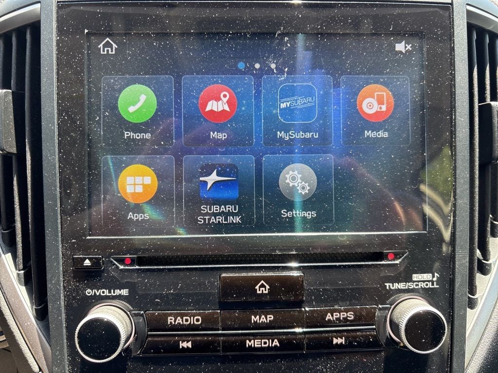 - Radio: Subaru Starlink 8.0" Multimedia Plus System -inc: AM/FM stereo HD Radio w/single-disc CD player, MP3/WMA/CRR/RW file capability, multi-touch gesture high resolution display screen, voice activated controls, Bluetooth® audio streaming, hands-free phone connectivity and hands-free SMS text messaging connectivity (refer to subaru.com for cell phone compatibility), Near Field Communication (NFC), iPod control capability, SiriusXM All Access radio and Travel Link (4 months free trial/subscription required after), smartphone integration for AHA, Android Auto, Apple CarPlay, Pandora and Starlink cloud applications (refer to subaru.com for app availability), USB and Over The Air (OTA) audio system update, steering wheel controls for audio and Bluetooth®, 6 speakers, 3.5mm auxiliary input jack and dual USB A input/charge ports