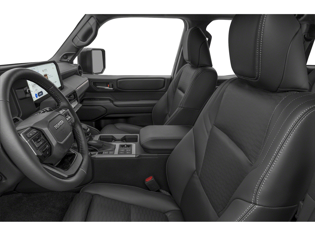 2024 Toyota Land Cruiser Base 2.4L 4-Cylinder, 10 Speakers, 18 x 7.5J Alloy Wheels, 4-Wheel Disc Brakes, ABS brakes, Air Conditioning, Alloy wheels, AM/FM radio: SiriusXM, Apple CarPlay/Android Auto, Auto High-beam Headlights, Auto tilt-away steering wheel, Auto-dimming Rear-View mirror, Automatic temperature control, Axle Ratio: TBD, Brake assist, Compass, Delay-off headlights, Driver door bin, Driver vanity mirror, Dual front impact airbags, Dual front side impact airbags, Electronic Stability Control, Emergency communication system: Safety Connect (up to 10-year trial subscription), Exterior Parking Camera Rear, Front anti-roll bar, Front Bucket Seats, Front Center Armrest, Front dual zone A/C, Front fog lights, Front reading lights, Front wheel independent suspension, Fully automatic headlights, Garage door transmitter: HomeLink, Heated & Ventilated Front Seats, Heated door mirrors, Heated front seats, Heated steering wheel, Illuminated entry, Knee airbag, Leather Shift Knob, Leather steering wheel, Low tire pressure warning, Navigation system: Drive Connect Cloud Navigation (1-year trial subscription), Occupant sensing airbag, Outside temperature display, Overhead airbag, Overhead console, Panic alarm, Passenger door bin, Passenger vanity mirror, Power door mirrors, Power driver seat, Power Liftgate, Power steering, Power windows, Radio data system, Radio: Toyota Audio Multimedia System, Rain sensing wipers, Rear air conditioning, Rear anti-roll bar, Rear reading lights, Rear seat center armrest, Rear window defroster, Rear window wiper, Remote keyless entry, Security system, SofTex Synthetic Leather Seat Trim, Speed control, Speed-sensing steering, Split folding rear seat, Spoiler, Steering wheel mounted audio controls, Telescoping steering wheel, Tilt steering wheel, Traction control, Trip computer, Turn signal indicator mirrors, Variably intermittent wipers, Ventilated front seats, 2.4L 4-Cylinder.
